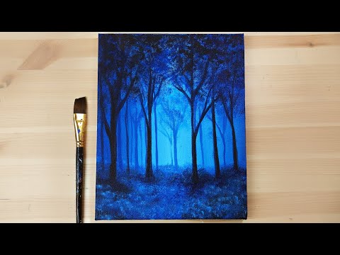 Acrylic Painting for beginners on canvas | Blue Forest | Acrylic Painting Easy Step by Step - Acrylic Painting Ideas With Blue Background